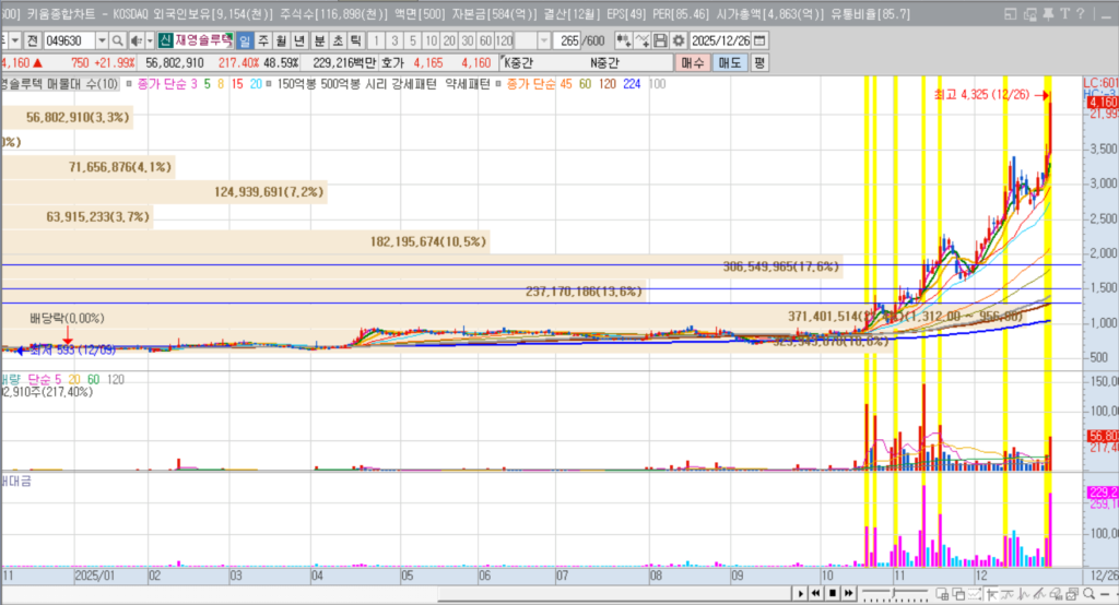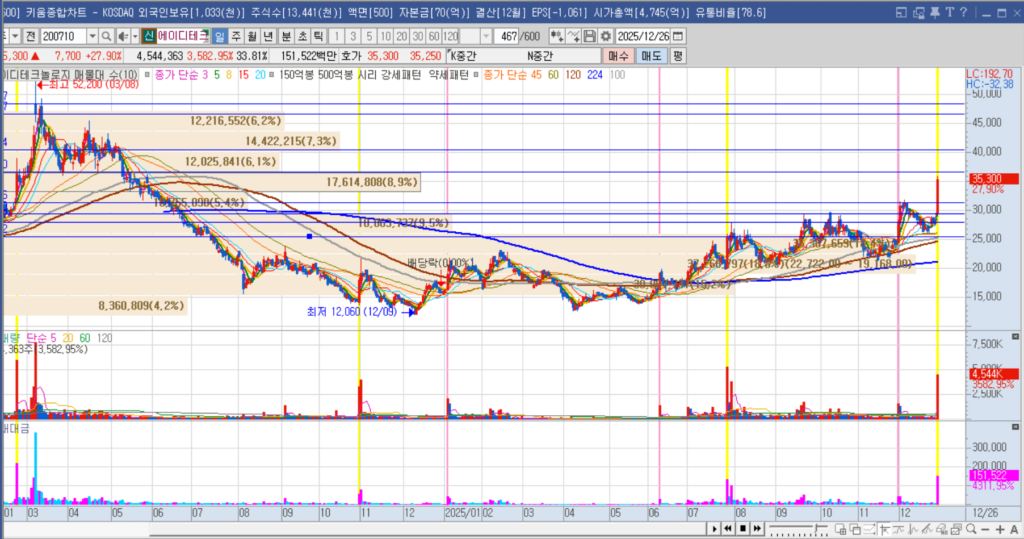 3. 에이테크솔루션(상한가/150억봉/ 삼성 자율주행)