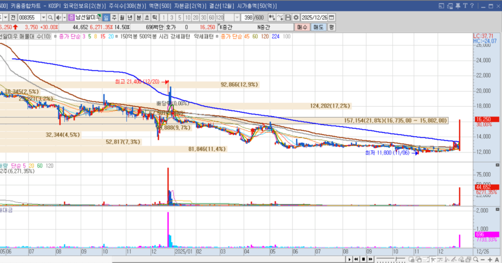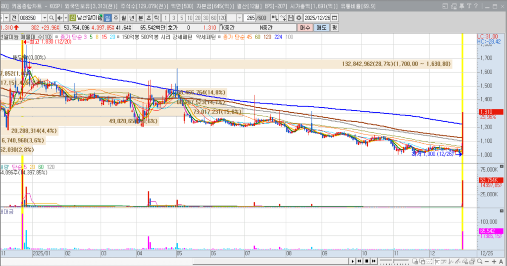 2. 남선알미늄(상한가/500억봉/ 구리)