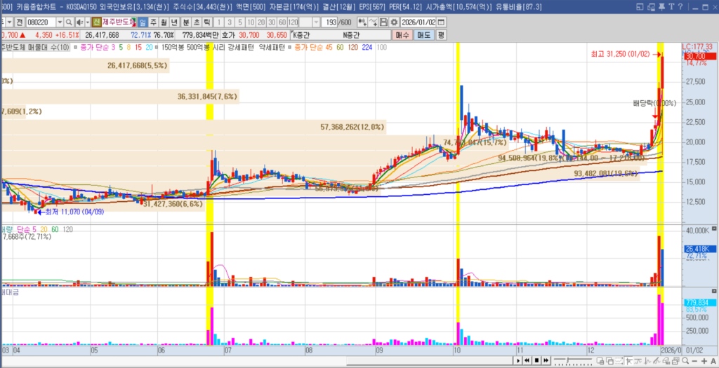 12. 제주반도체(2연속 500억봉/ 온디바이스 피지컬AI)