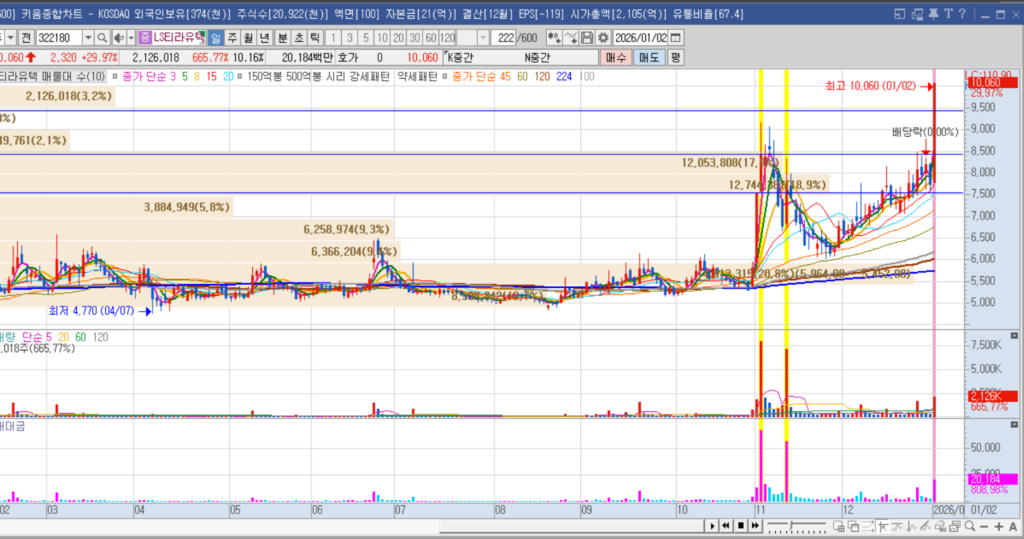 | (25.12.24.)[특징주] LS티라유텍, 물류로봇 시너지 기대에 ‘강세’ < 재테크 < 경제·과학 < 기사본문 – 뉴스티앤티글로벌 최대 가전·IT 전시회 ‘CES 2026’을 앞두고 로봇 관련주에 대한 기대감이 고조되는 가운데, 스마트팩토리 및 로봇 솔루션 전문기업 LS티라유텍(322180)의 주가가 24일 강세를 보이고 있다.LS티라유텍은 스마트팩토리 구축에 필요한 소프트웨어뿐만 아니라 자율주행 물류로봇(AMR) 하드웨어 기술력까지 보유한 ‘토털 솔루션’ 기업으로 부각되며 매수세가 유입되고 있다 |